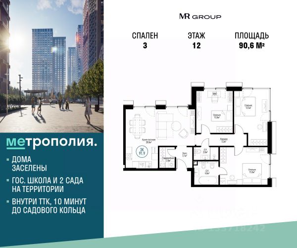 Продаётся 3-к квартира общей площадью 90.20 м², на 6 этаже. Корпус сдан. 2 очередь застройки - это 12 башен которые состоят из 22 разновысотных секций от 7 до 30 этажей. Метрополия - это город городов. Коллекция лучших решений из самых прогрессивных мегаполисов планеты. Для тех, кому комфортно в любой точке мира. Все корпуса выполнены в своем индивидуальном стиле и получили свои названия в честь мировых метрополий. Эта концепция сохраняется и в дизайнерских лобби, которые выполнены в едином стиле с детальной проработкой декора и использованием характерных для каждого мегаполиса материалов. Высотные здания "Метрополии" образуют благоустроенное дворовое пространство на 4,6 га, которое украсят более 400 деревьев и несколько сотен кустарников, живописные цветочные клумбы и аккуратные газоны. Территория комплекса продумана до мелочей: - Запланировано строительство государственной школы, а также 2 частных и одного государственного детских садов; - Сформированы несколько тематических зон; - Предусмотрено место для спокойного отдыха с кафе; - Зона активности для сторонников здорового образа жизни с тренажерами для воркаута и площадкой для стритбола и петанка. Детские площадки разделены по возрастам от малышей до подростков, на всех площадках используется оборудование европейского производителя, уложено резиновое покрытие, которое позволяет детям играть в полной безопасности. Современные инженерные решения не оставят вас равнодушными: - Скоростные и бесшумные лифты; - Пожарная и охранная сигнализация; - Система навигации с ночной подсветкой по всей территории комплекса; - Wi-Fi-покрытие в зоне лобби и по всей территории комплекса; - Система распознавания лиц для доступа на территорию ЖК; - Система контроля и учета энергоресурсов; - Контроль доступа на парковку по системе считывания номеров.