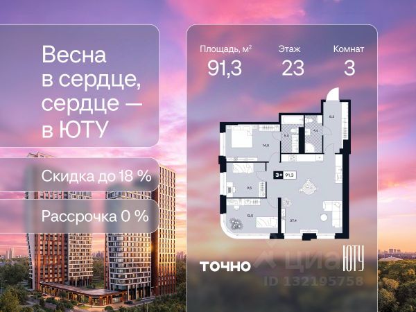 Скидка до 18% в апреле на выделенный пул лотов! ЮТУ — камерный проект бизнес-класса с исключительной архитектурой, видовыми квартирами и подходом к большой благоустроенной набережной канала имени Москвы. Проект создает идеальный баланс жизни в городе. Это приватный оазис, где в любой момент можно сменить обстановку и выбрать любой из тысячи маршрутов к активному отдыху и ярким впечатлениям. Удачное месторасположение: • Первая линия в прибрежной части Химкинского водохранилища • Исключительно тихий и зелёный район Южное Тушино • За 2 минуты можно спуститься к воде, за 10 минут найти зеленые парки и готовую инфраструктуру, за 30 минут доехать до Кремля Концепция проекта: • Две футуристичные башни, соединенные торговой галереей от бюро ATRIUM • 60 неповторяющихся планировок: квартиры с угловым панорамным остеклением, мастер-спальнями и гостиными до 39м², а также просторные квартиры площадью до 128,6 м² Чувство эксклюзивности: • Своя приватная жилая экосистема только для резидентов домов • Лаунж-терраса на крыше • В проекте предусмотрен закрытый двор-парк. Прогрессивные технологии: • 3-х уровневая система безопасности (Face ID, BLE-метки, видеонаблюдение) • Умный паркинг с распознаванием номеров Проект федерального девелопера ТОЧНО, который входит в ТОП-5 девелоперов России по объемам строительства.