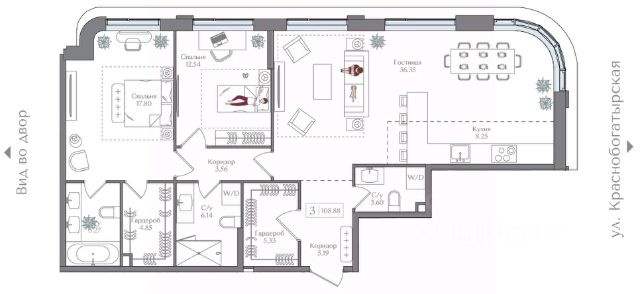 В ней каждый найдет что-то для себя: любители приватности и камерности оценят отсутствие многочисленных соседей на площадке, ведь на этаже всего 2 квартиры; ценители эргономики - будут в восторге от планировочного решения: вместительная гардеробная, просторная прихожая с системами хранения, позволяют использовать максимум полезной площади, не требуя дополнительных громоздких шкафов, а фанаты тишины с удовольствием оценят то, что окна спален выходят в уютный двор, где всегда тихо.