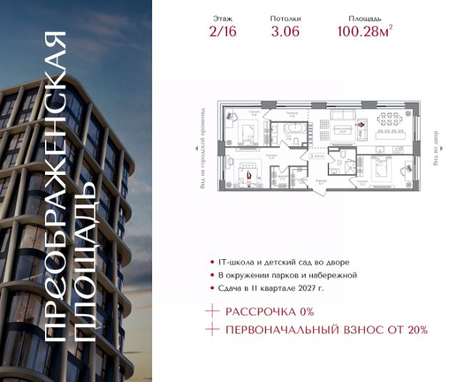 Рассрочка 0% с первоначальным взносом от 20% Индивидуальные скидки Квартира на 3 этаже в жилом комплексе премиум-класса "Преображенская площадь". Общая площадь: 79.42 кв.м. Проект премиум-класса в историческом районе Москвы. До метро "Преображенская площадь" 3 минуты пешком. Квартиры сдаются без отделки и в свободной планировке, чтобы жители могли оформить пространство с учетом своей индивидуальности. Высота потолков от 3,15м, широкоформатное остекление, 3-5 квартир на этаже. Система Умный дом. Дизайнерские лобби. Внутренний двор 1,5 га функциональное и безопасное пространство для игр, работы и занятий спортом. Пешеходный променад для прогулок. Дома переменной этажности. Есть подземный паркинг. Жилой комлекс находится в окружении парков Сокольники, Черкизовский, Измайловский, заповедника Лосиный остров и ВДНХ, а также вблизи пешеходной набережной. Комфортная удаленность от центра: 7 минут на автомобиле до ТТК, 8 минут до Садового кольца, 25 минут до Кремля.