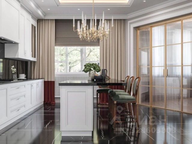Мебель, оборудование: Дом полностью укомплектован мебелью, выполненной на заказ. В прихожей большой гарнитур до потолка, с пуфом, вешалкой, ящиками для мелочей и 5-ти створчатым шкафом для одежды. Кабинет оборудован выполненным на заказ шкафом во всю стену, черного цвета (в едином стиле с кухней), также черного цвета стол со стулом и кожаный диван (каретная стяжка).