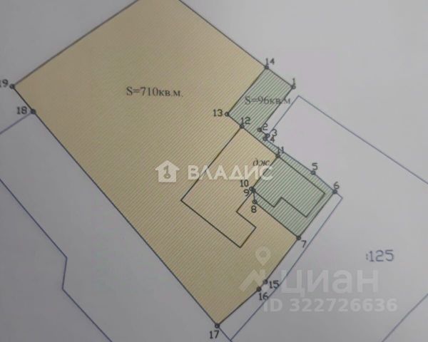 Земля находится в долевом пользовании, 1/5 участка (1,8 сотки от общей площади 9 соток).