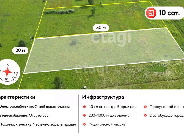 Уникальное предложение для тех, кто хочет построить дом мечты в уютном, спокойном, живописном, экологически чистом уголке Егорьевского района Московской области! Продается 6 участков (по 10 соток) в с. Лелечи. Электричество по границе участка (стоит столб), в перспективе прокладка газопровода, круглогодичный подъезд, частично асфальтирован, частично грунт. Отличное транспортное сообщение. Расстояние до г. Егорьевск 40 км., это 35 мин езды на на машине. С "Этажами" вы можете приобрести участок и построить на нем свой идеальный дом в ипотеку под всего 6% годовых. Это уникальное предложение позволит вам реализовать свои жилищные планы с минимальными финансовыми затратами. Покупая с "Этажами" вы получаете сертификат гарантии безопасной сделки, полное юридическое сопровождение, ЛЬГОТНАЯ ИПОТЕКА в ведущих банках страны, а также СПЕЦИАЛЬНЫЕ УСЛОВИЯ ОТ НАДЕЖНЫХ ЗАСТРОЙЩИКОВ! Звоните нам прямо сейчас и узнайте все подробности. С уважением, Татьяна. Код пользователя: 125339 Номер в базе: 3124212