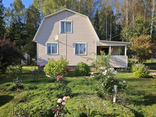 Дом 2-х этажный комбенированный, площадью 102,7 м2 (брус, кирпич, щит), обшит сайдингом, на участке 8,5 сот, Ново-Рижское шоссе, 120 км. Участок 8,5 соток, огорожен по фасаду металлическим забором, боковые стороны от соседей сеткой рабица, оборудована калитка и ворота для въезда на участок, участок расположен на возвышенности, правильной формы, сухой, освоен, (засеян газоном, имеются фруктовых насаждений). Дом уютный благоустроенный, так же утеплены полы, стены, фронтоны, крыша, фундамент ленточный + столбчатый. Год постройки дома 2000. Отопление дома печь камин + конвекторы. Можно приезжать в зимний период. На первом этаже в гостиной и в тамбуре - тёплые полы