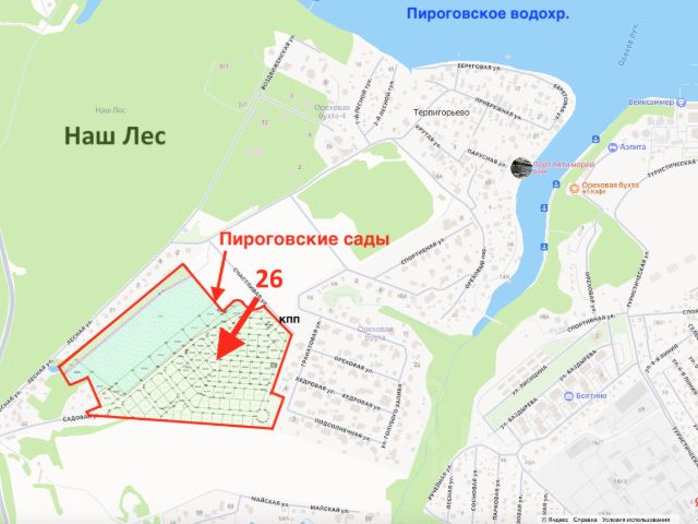 Местоположение: ул. Счастливая, дер. Терпигорьево, г.о. Мытищи, в 10-ти км от МКАД, на севере Московской области, проезд по Дмитровскому, Осташковскому или Ярославскому шоссе, на берегу Пироговского (Клязьминского) водохранилища.