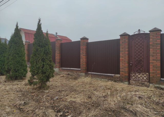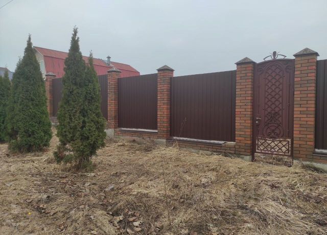 Участок огорожен забором, имеет ровную поверхность, есть двое ворот, калитка, заведено электричество, стоит модульное здание, с двумя комнатами, можно переночевать, биотуалет, две кладовки для хранения инвентаря.