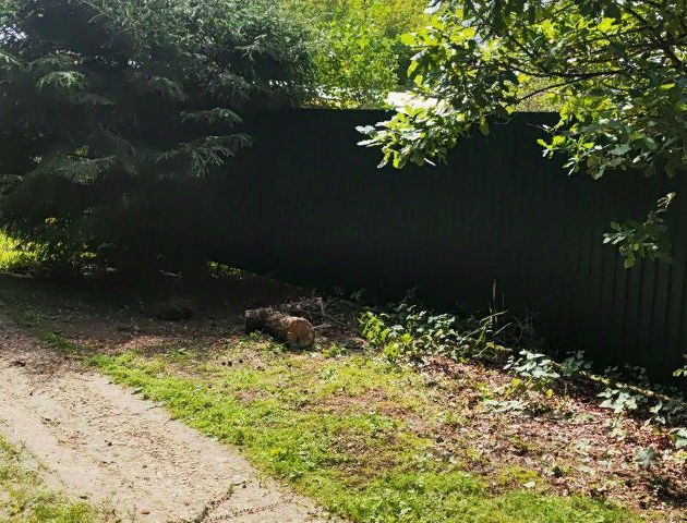 Забор по всему периметру участка, участок ровный, прямоугольный.