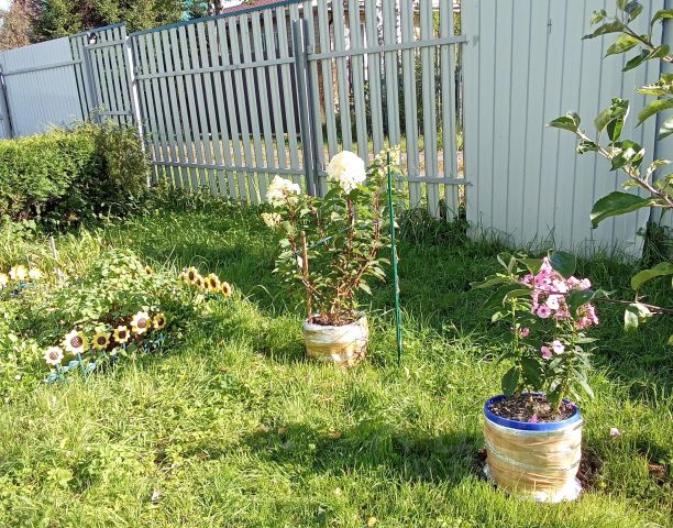 - плодоносящие деревья и кустарники, а также декоративные цветы, овощные грядки;