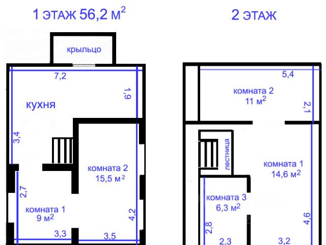 На втором этаже 3 комнаты 14,6 кв.м, 11 кв. м., 6,3 кв,м. (см. схему расположения).