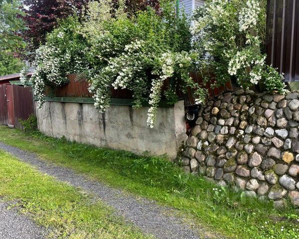 На участке много как плодовых так и декоративных деревьев и кустарников, а именно: туя, сосна, ель, сирень, каштан, яблоня, вишня, калина, смородина и другие.