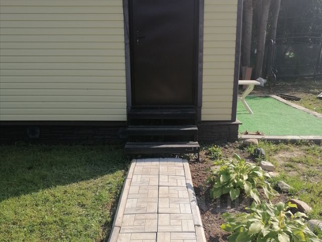 Дом построен из СИП-панелей на винтовых сваях, обшит виниловым сайдингом, часть со стороны террасы обшита фасадной плиткой под кирпич Наubеrk. Открытая терраса размером 1,80х5,70, большое панорамное окно напрямую из гостиной, позволит наслаждаться приятным чаепитием тёплыми летними вечерами. В доме есть электричество, перегородки из гипсокартона со звукоизоляцией Теплокнауф коттедж разделяют дом на несколько комнат. Гостиная совмещённая с кухней, спальня, детская, санузел. Высота потолка 280см., обшит ОSВ плитой 15мм и утеплен рулонным утеплителем Изовер толщиной 15см. Пол и стены из СИП панелей толщиной 15см. Крыша двускатная, разноуровневая, крытая гибкой черепицей. Большие пластиковые окна из профиля Rеhаu