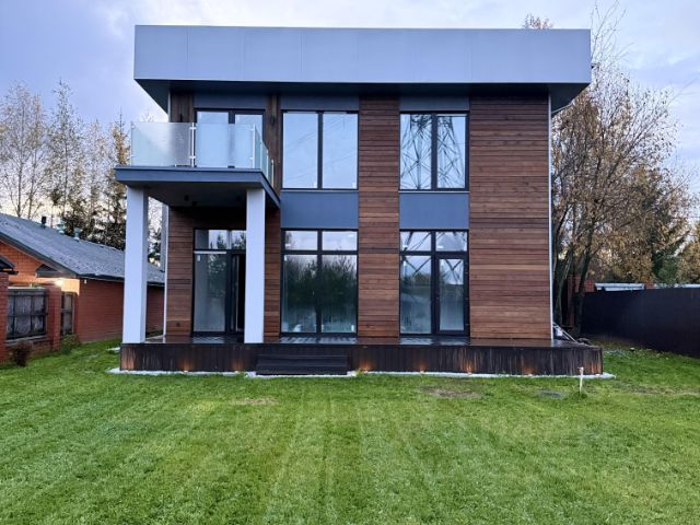 Жилой 3 эт. кирпичный дом (оригинальный фасад, 3 спальни, холл, в доме небольшая кухня 15 кв.м., гостиная с камином, 1 су+душ). Все коммуникации! Расположен в центральной части охраняемого элитного поселка. Мощный газовый котел Дитрих, система очистки воды, есть камин, балконы в спальнях.