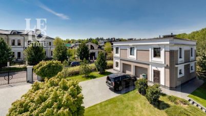 На участке - отдельно стоящий гараж на 6 машиномест, помещение охраны, хозяйственный блок и квартира для персонала. Простор позволяет разместить террасы, зоны барбекю, бассейн и прогулочные маршруты. Ландшафт выполнен с учётом приватности и видов на зелёный массив.