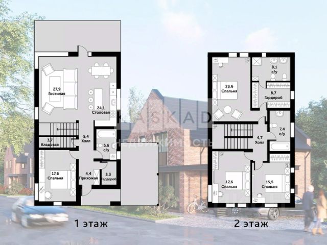 1-й этаж: 856.3 кв м ( 3 спальни, 5 с/у)