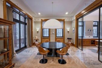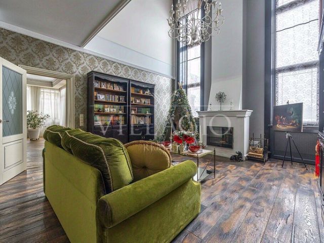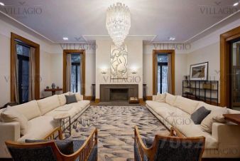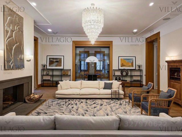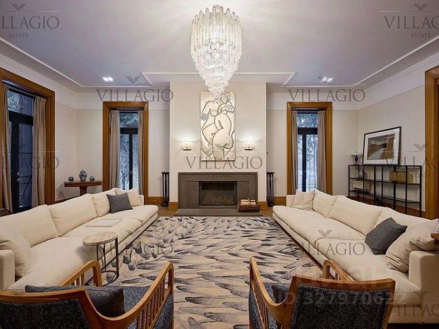 Дополнительно - шесть спален, каждая с гардеробной и санузлом, библиотека, семейная гостиная. Мебель в интерьере - Rugiano, Minotti, Frato, Porada, Flexform, Poltrona Frau, Ulivi, Fiam. Свет - Flos, Foscarini, Tom Dixon. В отделке - мрамор, оникс, натуральное дерево, стекло и металл.