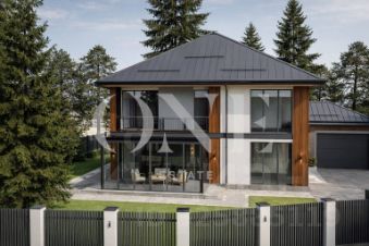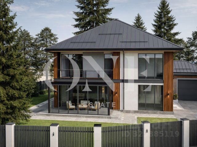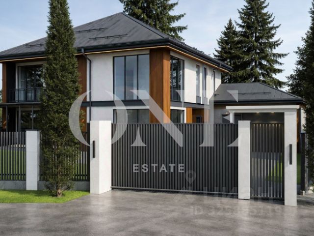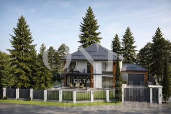 На участке — отдельно стоящий гараж на 6 машиномест, помещение охраны, хозяйственный блок и квартира для персонала. Простор позволяет разместить террасы, зоны барбекю, бассейн и прогулочные маршруты. Ландшафт выполнен с учётом приватности и видов на зелёный массив.