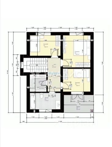 3 изолированные спальни (13 и 17 кв.м., хозяйская спальня 31 кв.м. с собственными гардеробной (6 кв.м), сан.узлом (5,3 кв.м) с душевой и гостиной). Второй сан.узел. Холл.