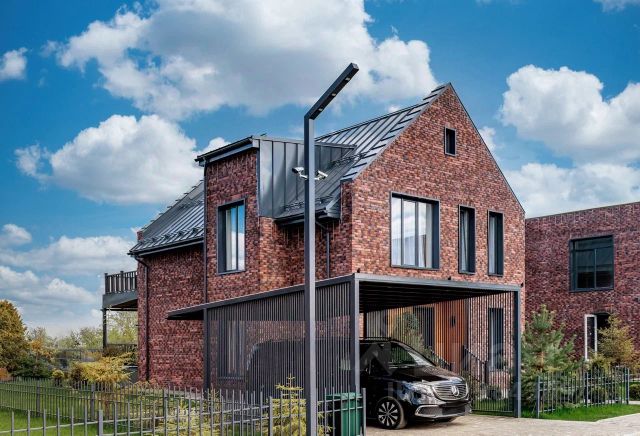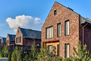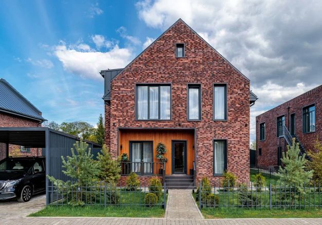 Кирпичный двухэтажный дом построен в классическом австрийском стиле, где основная цветовая гамма, это бежевый кирпич и темно коричневая черепица. Дом построен в 2012 году и его отличительная черта: высокие потолки до шести метров, второй свет в гостиной и закрытая стеклянная веранда с зоной барбекю. Готовый функционал включает в себя пять спален, гостиную с кухней, винную комнату, прачечную, кабинет и гардеробные.