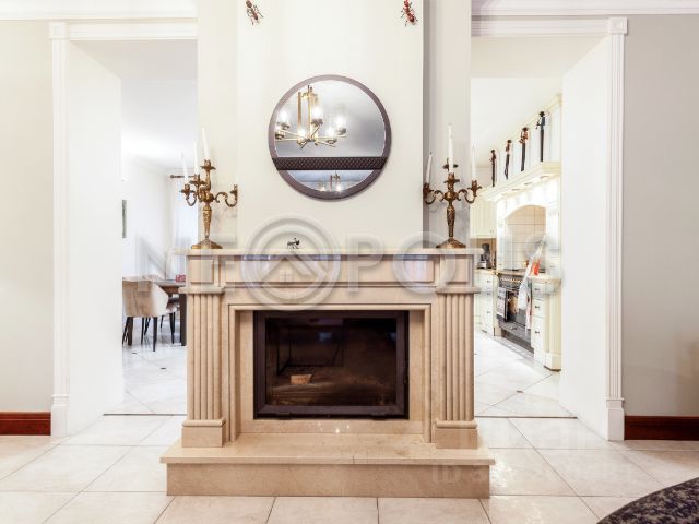 В доме выполнена качественная стильная отделка по дизайн проекту европейского дизайнера материалами европейских производителей: мрамор, дерево, керамогранит. Санузлы отделаны итальянской плиткой с декором, стены английские обои, декоративная штукатурка, краска, полы бельгийский ламинат. Сантехника итальянская, кондиционеры Panasonic, полы с подогревом на первом этаже и в санузлах, отопление: радиаторы Arbonia, внутрипольные конвекторы, отделка камина и подоконники из мрамора, постирочная оборудована техникой Miele, мансардные окна VELUX, окна KBE.