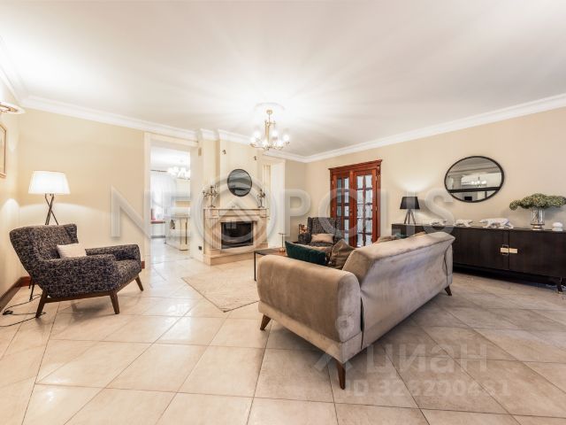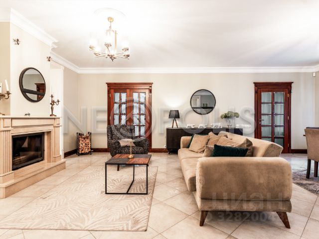 В основном доме: гостиная-столовая с мраморным камином и выходом на террасу, кухня с кладовой комнатой, 6 спален, кабинет и жилая комната свободного назначения, 4,5 с/у, функциональная постирочная, высокие потолки - 3,5 м на первом этаже и 3,2 м на втором.