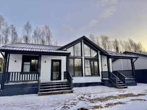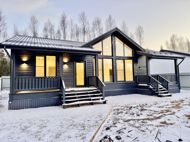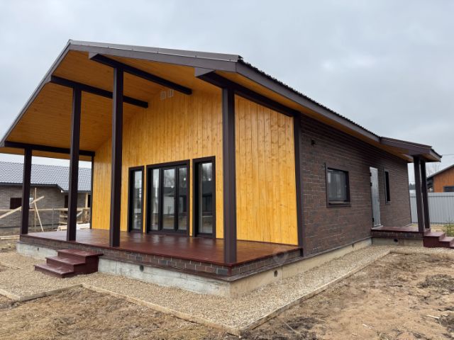 Материал стен профилированный термообработанный брус. Кровля минеральная черепица Braas, окна профиль Melke.