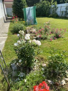 На участке расположен отдельный двухэтажный домик площадью 35 кв.м. для проживания обслуживающего персонала или охраны. На территории участка организован ландшафтный дизайн: высажены декоративные и плодовые деревья, кустарники, вымощены дорожки, установлена дренажная система. Участок граничит с лесным массивом.