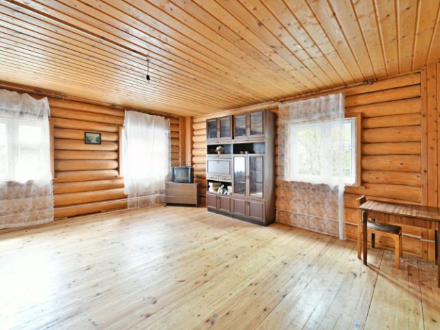 Внутри дома есть 2 этажа и 3 комнаты, а также кухня и 2 совмещенных санузла. Также имеется баня и погреб. Цокольный этаж предлагает гараж и 2 комнаты, подготовленные под баню. На первом этаже находятся кухня, гостиная и санузел. На втором этаже можно увидеть две большие изолированные комнаты и санузел.