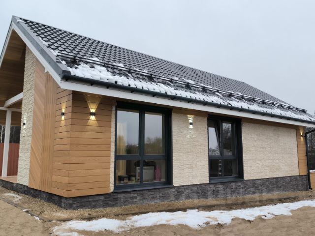 Продам жилой дом из газоблока общей площадью 85 м2, размер 14,5м х 7м (жилая 61 м2, терраса+крыльцо 24 м2). Участок прямоугольной формы 6,42 сотки, сухой. Документы в порядке. Любая форма оплаты: ипотека, семейная ипотека, наличные. оформлен, жилой (прописка). Гарантия на дом по договору. Коммуникации: - Электричество 15 кВт (сельский тариф) - Водоснабжение центральное - Канализация: станция биологической очистки - Отопление электрический котел с удалённым управлением (через телефон). О доме: - Фундамент: железобетонная лента + плита - Коробка: газоблок + теплоизоляция. - Кровля: металлочерепица Grand Line - Окна: Veka двухкамерные с энергосберегающим напылением - Наружная отделка: планкен из лиственницы (сорт Экстра) + фиброцементные панели - Терраса из лиственницы (сорт Экстра) - Теплый пол по всей площади дома - Кондиционер - Система защиты от протечки воды - Вентиляция - Кухня со встроенной техникой + мебель (все новое на гарантии) - Сантехника и смесители TECE, AM-PM Забор из металлического штакетника (задняя часть 3-D сетка), откатные ворота с электроприводом, парковочное место отсыпано щебнем. В пешей доступности: - автобусная остановка - ж/д станция - продуктовый магазин Рядом: - Школа, - Магазины, - Аптеки - Автосервисы - Рыбалка. Поселок охраняется, освещается, дороги зимой чистят. Собственник. Торг Дом от хозяина (частник) Варшавское шоссе.