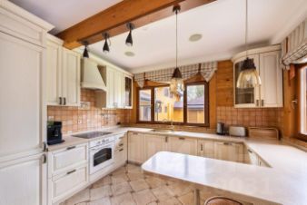 ЛОТ: h3583 ДОМ: Новый дом с бассейном. В доме не жили. Сделана современная удобная планировка. Есть спальня на первом этаже для гостей или родителей. Гостиная более 100кв.м с удобным зонированием и дровяным мраморным камином. В доме большая площадь остекления и много света. В мастер - спальне свой отдельный санузел. В кухне дополнительное помещение хранения. В зоне отдыха бассейн, сауна, бильярдная с русским бильярдом 12 футов, теннисная и массажная комната. В отделке использованы дорогие материалы. На полу паркетная доска. Установлена итальянская кухня и сантехника, теплые полы, кондиционеры, видеонаблюдение. В каждой комнате система увлажнения. Дом полностью меблирован и готов к проживанию, заведен мощный интернет и спутниковое ТВ. УЧАСТОК: Участок совершенно приватный, соседей не видно. Растет много взрослых деревьев и кустарников. Установлен капельный полив, дренаж, ливневка, автоматические ворота. Построен теплый гараж на 2 автомобиля с ИБП, парковка вымощена брусчаткой. Всего в 5 мин пешком расположен парк с водоемом, детская площадка и спортивная площадка с футбольно теннисным полем и уличными тренажерами. ОПИСАНИЕ ПОСЁЛКА: Коттеджный поселок Борки (Новорижский) находится на 30 км Новорижского шоссе в окружении хвойного леса. Все дороги в поселке вымощены брусчаткой, сделано парковое освещение. В поселке есть детская и спортивная площадки, обустроены прогулочные зоны, есть свое озеро. Поселок полностью обжитой, все соседи проживают круглогодично. Функционирует своя коммунальная служба. На въезде в поселок КПП, осуществляется патрулирование. ИНФРАСТРУКТУРА: В 5 минутах на автомобиле продуктовые супермаркеты, ресторан, рынок. В 10 минутах на автомобиле, жителям поселка доступна вся необходимая инфраструктура Павловской Слободы: муниципальная школа и детский сад, поликлиника, круглосуточные магазины, аптеки, торговые центры. В соседней деревне Аносино, есть конная база с рестораном и санаторий с теннисным кортом. Рядом спортивный комплекс Лужки где есть фитнес центр, бассейн, ресторан, детский центр и горнолыжная трасса.