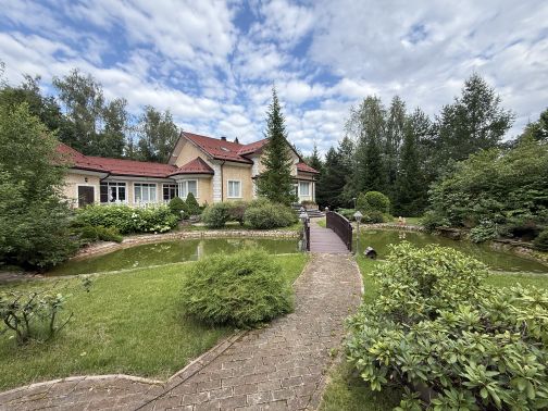 ID 1241 Авторская усадьба на роскошном участке в дер. Дергайково на Новой Риге Роскошный особняк с 5-ю спальнями, общей площадью 1000 м.², расположен на видовом участке 124 соток. Дом прекрасно подходит для постоянного проживания на природе для большой семьи. На первом этаже: холл, гардеробная, кухня со столовой зоной с настоящей русской печью, гостиная с камином и вторым светом, сигарная комната с выходом на участок, спальня с санузлом и гардеробом, рабочий кабинет, который можно сделать дополнительной спальней, технический блок с котельной, серверной, кладовой и выходом в гараж. SPA-зона с сауной и душевой. На втором этаже: 3 детских спальни со своими гардеробными и ванными комнатами, игровая комната, мастерская для детей. Цоколь: несколько комнат свободного назначения, спортзал, ванная и душевая. Авторская усадьба построена из кирпича и расположена на холме в окружении собственного великолепного сада. В доме есть несколько террас, с которых открываются панорамные виды на участок и окрестности. Потрясающий интерьер выполнен в стиле русской усадьбы с английскими мотивами. Фасад обшит термодеревом. На участке выполнен профессиональный ландшафтный дизайн в стиле садов Петергофа и Версаля, где приятно прогуливаться и наполняться душевной гармонией. Дер. Дергайково находится в экологически чистом районе ближайшего Подмосковья, где нет промышленных производств. Рядом лес и протекает река Малая Истра с обустроенным пляжем. Доехать до до загородной усадьбы на машине можно по скоростному Новорижскому или Волоколамскому шоссе. В 12 км. находится г. Истра. В пешей доступности находится продуктовый магазин. В 1 км. расположен отель "HILTON GARDEN INN MOSCOW NEW RIGA", где есть баня, SPA, бассейн, салон красоты и ресторан. На территории отеля работает гимназия им. Бориса Пастернака. В 3-х км. находятся детский сад, средняя школа, аптека, медицинское учреждение, почтовое отделение и строительный рынок. Идеальное место для ценителей загородной жизни.