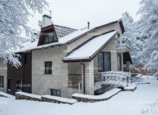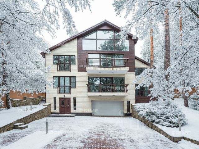На лесном участке 55 соток с ландшафтным обустройством, на котором растут вековые сосны, расположена загородная усадьба площадью 1500 метров.