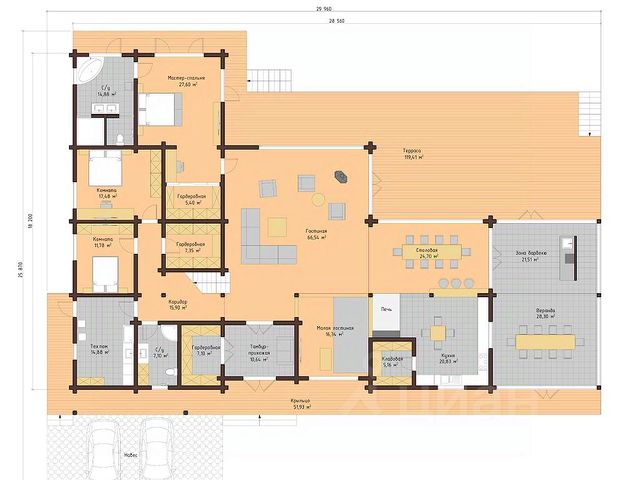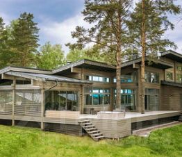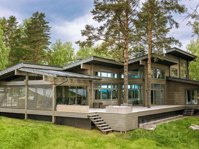 Премиум вилла LERMONTOV в стиле шале фахверк 373,1 м² на участке 16,4 соток с вековыми елями и личной акваторией 3,6 сотки в КП Ели Estate, Пятикратном победителе премии Поселок Года. ЗВОНИТЕ или НАПИШИТЕ свой номер телефона в Циан сообщениях и Вы получите: презентацию дома, планировку, генплан посёлка, консультацию и ответы на ваши вопросы от эксперта поселка. В доме: 4 спальни с собственными удобствами, детская с игровой-кинотеатром на 2 ярусе, холл вдоль всего дома на 23 м², просторная кухня-гостиная на 39,8 м² с видом на каскад прудов, мини спа, сауна и соляная стена, постирочная и котельная. Особенности: 195 м² терраса с 4 выходами, панорамные окна в пол по всему периметру дома, 5 метров высота потолков в коньке кровли, пожизненная гарантия и сервисное обслуживание, система умный дом позволяет управлять виллой на месте и удаленно. 2 вековых ели и ландшафт из 100+ деревьев на участке, собственный выход к воде, летняя кухня, пирс, барбекю и костровая зона. Уличное освещение по 8 сценариям. Зеленая изгородь из туй, елей и кедров. ПЛАНИРОВКА Общие помещения: терраса с 4 выходами (195), кухня гостиная (39,8), холл (23), мини спа, сауна, соляная стена и санузел (4,6), прихожая (5,2), санузел, лапомойка (3,2) Технические помещения: котельная (5,1), постирочная (5,4). Мастер-блок: спальня 1 (15,6) с гардеробной (6,1) и ванной комнатой (6,9) Детская (13,3) c игровой-кинотеатром на 2 ярусе (19,4) Спальня 2 (15,4) Спальня 3 (13,3) МАТЕРИАЛЫ И БРЕНДЫ Окна: Gmax, TopLT, Vision Light. Сантехника: Grocenberg, Ceramica Nova, Bettoserb, Abber. Кухня: кухонная мебель по индивидуальному заказу, столешницы из дуба, оникса и карагача, кухонный остров из керамогранита, оникса и слеба карагача. Бытовая техника: винный шкаф, посудомоечная машина, духовой шкаф, СВЧ и холодильник Bosch, паровой шкаф, 5 телевизоров, проигрыватель для пластинок, проектор, телескоп. ИНЖЕНЕРИЯ И КОММУНИКАЦИИ Все инженерные системы премиум марки REHAU, индивидуальный проект всей инженерии с управлением по QR коду. 151,1 м² общая площадь теплых полов с системой обогрева REHAU. Вилла оснащена системами: рекуперации(сохранения тепла), приточно-вытяжной вентиляции, увлажнения, кондиционирования, охлаждения, обеспыливания, управление микроклиматом по индивидуальному проекту. О ПОСЕЛКЕ Ели Estate — это клубный эко-поселок в 60 мин от МКАД по Новой Риге и скоростной М-11 "Нева", X5 победитель премии Поселок года, признан самым экологичным в России. 12 ГА инфраструктуры: Каскад прудов 1,5 ГА, Песочный пляж, Теннисный корт, Вертолетная площадка, Продуктовый магазин, Фермерский мини рынок, Банный комплекс, Корт для сквоша и падел тенниса, Клабхаус, Детский игровой комплекс, Фитнес клуб, Workout зона, Клаб хаус, Пруд для рыбалки, Костровая зона. ЗВОНИТЕ или НАПИШИТЕ свой номер телефона в Циан сообщениях и Вы получите: презентацию дома, планировку, генплан посёлка, консультацию и ответы на ваши вопросы от эксперта поселка! Классный большой дом класса Пятницкое шоссе.