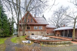 На территории участка имеется отдельный гостевой двухэтажный дом площадью 250 кв. м с гаражом на два автомобиля. Данный дом полностью мебелирован, имеет три изолированных апартамента и полностью оборудованную кухню.