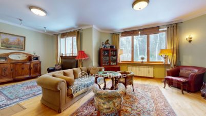 Участок ровный, правильной формы с лесными и плодовыми деревьями, покрыт газоном. Есть зона барбекю. Въездная группа и дорожки вымощены брусчаткой. Участок огорожен, установлены откатные ворота с электроприводом.
