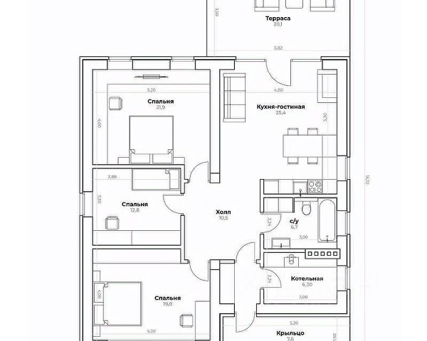 -4 спальни, застекленная веранда, санузел.