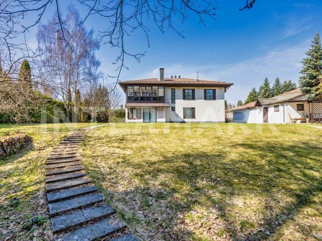 На участке - отдельно стоящий гараж на 6 машиномест, помещение охраны, хозяйственный блок и квартира для персонала. Простор позволяет разместить террасы, зоны барбекю, бассейн и прогулочные маршруты. Ландшафт выполнен с учётом приватности и видов на зелёный массив.