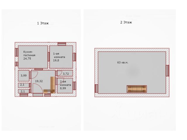 1 этаж полностью обустроен, мансардный этаж не обустроен.
