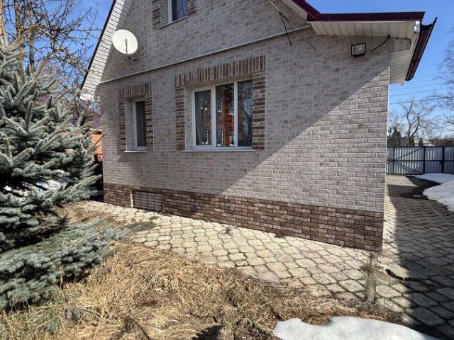 Дом 2х-этажный, светлый, площадь 98 м2. Возведён из бревна и бруса. 2-й этаж-каркас. Отделка светлым канадским сайдингом. Глубокий ленточный фундамент, внутри дом обшит вагонкой. Установлены большие окна из ПВХ. Индивидуальный проект.
