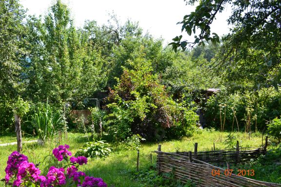 На участке селекционные плодовые деревья (вишня, яблони и груши плодоношение очень обильное), посажена смородина, крыжовник, малина и пр.