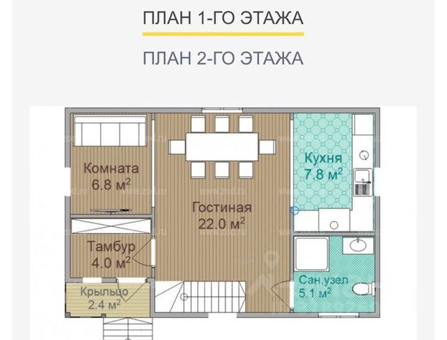 В доме на первом этаже закрытая летняя терраса (11 кв.м.), просторный холл (12 кв.м.), кухня-столовая с кухонным гарнитуром (10 кв.м), комната-кабинет с камином (10,7 кв.м.), гостиная с эркером (15 кв.м.). Также на первом этаже расположена ванная с закрытой душевой кабиной и бойлером (4,3 кв.м.). Под лестницей на второй этаж располагается очень вместительный закрытый чулан.