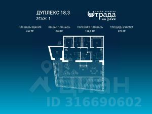 Самый большой в поселке четырехэтажный дуплекс площадью 225кв.м., на участке 6 соток, со всеми коммуникациями: Газ, Вода, Электричество, Канализация.