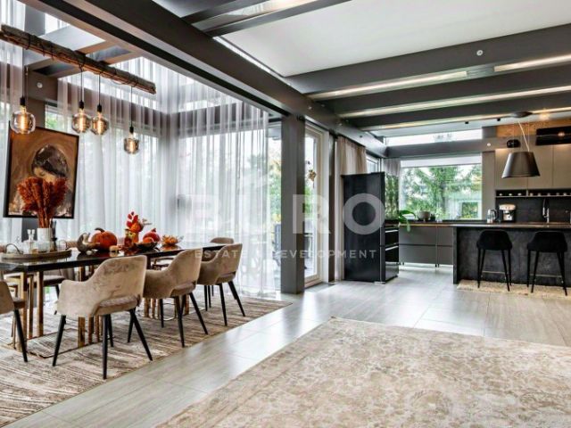 Особенности дома: интересная планировка, высокие потолки (3,3 м - на 1 этаже, 5,5 м - на втором), лесной участок - утопает в зелени, живописный вид из панорамных окон на вековые сосны, рябины, дубы.