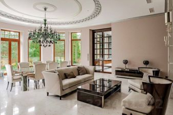 Современное домовладение общей площадью 1008 кв.м на живописном зеленом участке 32 сотки в 23 км от МКАД по Ильинскому шоссе в охраняемом КП Европа-1. Сам поселок утопает в зелени и находится в окружении огромного хвойного лесного массива со статусом особо охраняемая территория площадью 744 Га.