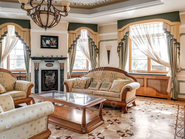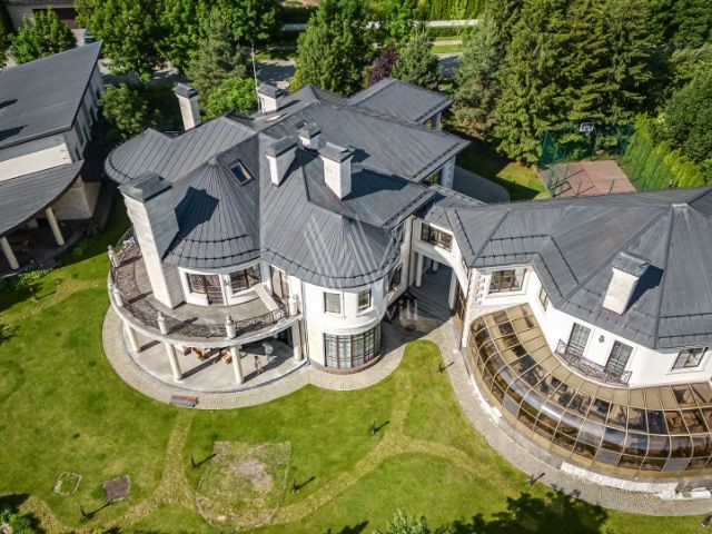 Резиденция площадью 2400 кв.м на лесном участке 61,4 сот расположена на престижном западном направлении в элитном поселке.