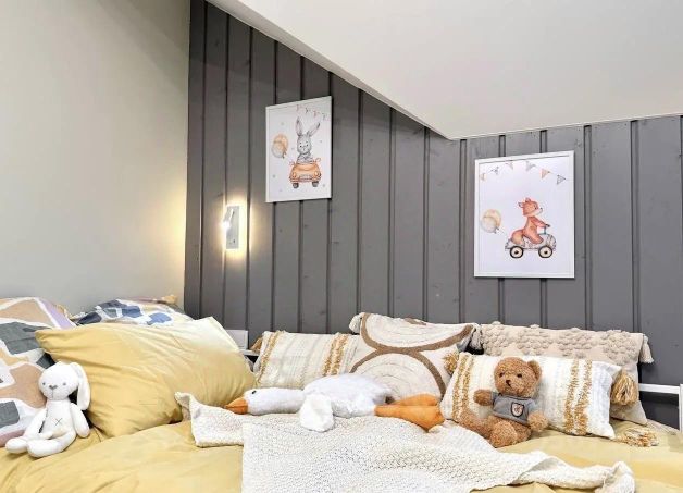 На второй этаж ведёт дубовая лестница (под лестницей кладовка). На втором этаже коридор, санузел и 4 комнаты (две спальни, детская и гардеробная), большой балкон с видом на лес. Детскую можно дополнительно отапливать от камина.