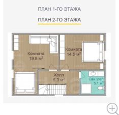 входная зона, холл, большая кухня-гостиная (20 кв.м.) с выходом на террасу (24 кв.м) и участок, 2 спальни, санузел, тех.помещение.