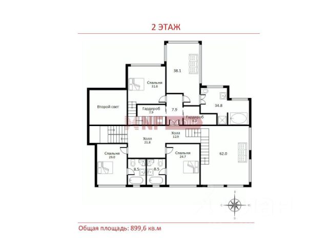 2й этаж: холл с видом на лестницу и вторым светом, главная спальня (ванная, две гардеробные, зимний сад), две детские спальни (каждая с ванной), игровая комнататерраса.