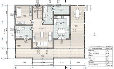 1-й этаж: прихожая, бойлерная, холл, кухня, гостиная и санузел