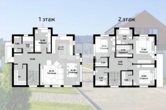 2-й этаж. Второй этаж дома представляет собой мансарду и включает в себя: спальня 1, спальня 2, с/у, холл 2-го этажа/детская игровая зона.