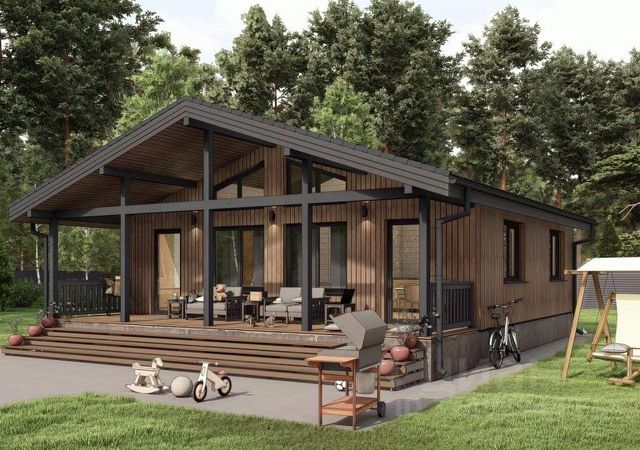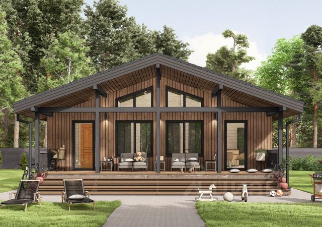 Площадь дома — 154 м², 2 этажа, каркасно-щитовой, утепление минватой 150 мм (по всему контуру: стены, крыша, пол).